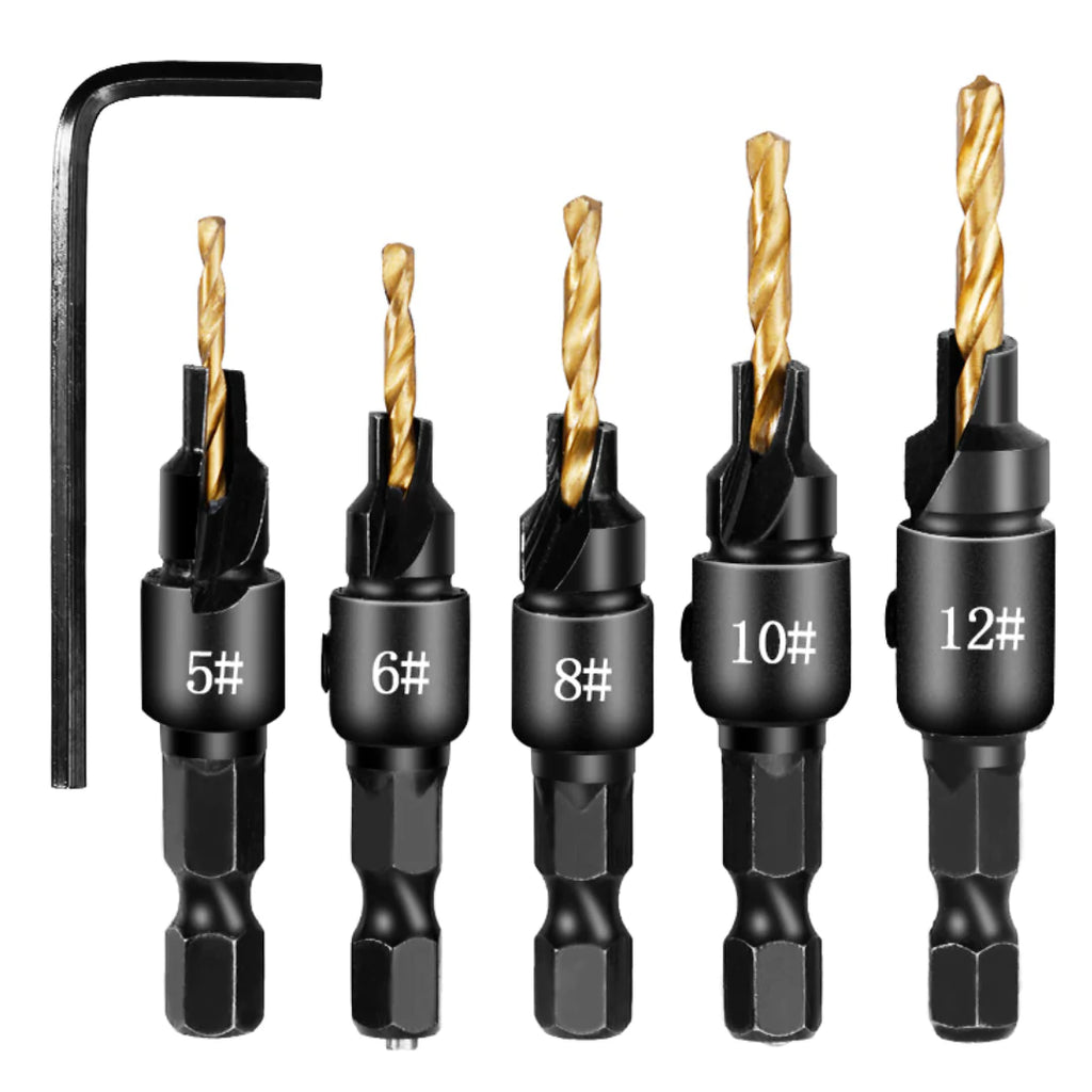 1x Brocas Escareadoras Em Titânio | Conjunto Com 5 Peças
